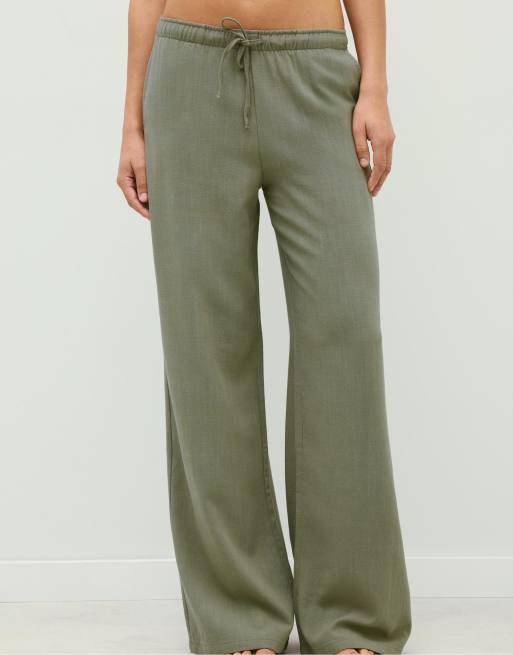 Stradivarius - Pantaloni fluidi in misto lino kaki