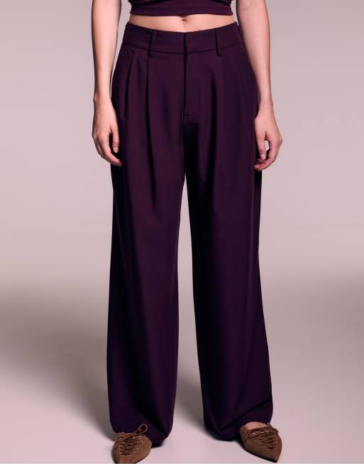 Stradivarius - Pantaloni regolabili a fondo super ampio bordeaux