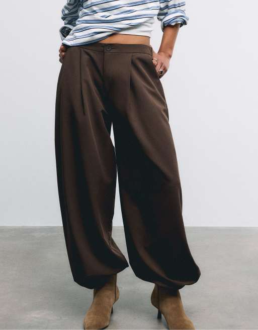 Stradivarius - Pantaloni sarouel eleganti marroni