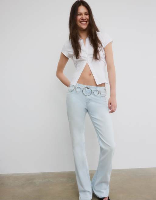 Stradivarius Petite - D67 - Jeans bootcut slim color candeggiato chiaro