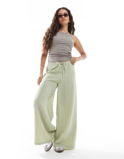 Stradivarius Petite - Pantaloni a fondo ampio effetto lino kaki a righe
