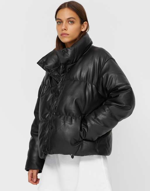 Stradivarius - Piumino imbottito nero in pelle sintetica
