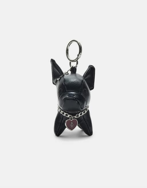 Stradivarius - Portachiavi con charm a forma di cane nero in pelle sintetica