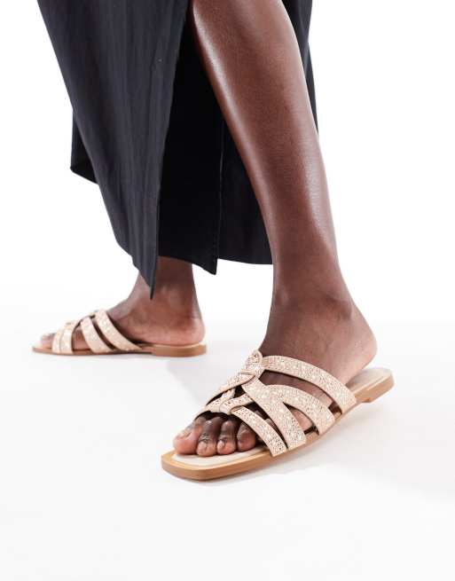 Stradivarius - Sabot beige bassi con fascette decorate