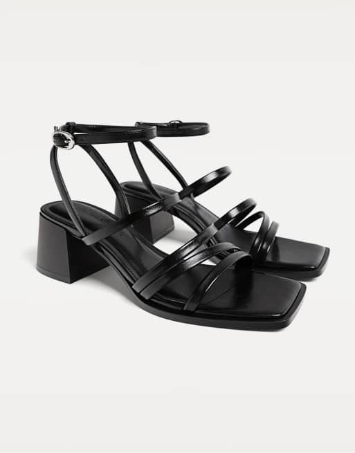 Stradivarius - Sandali neri con tacco largo e fascette