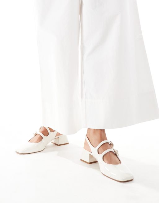 Stradivarius - Scarpe Mary Jane con tacco color écru
