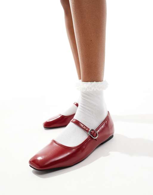 Stradivarius - Scarpe Mary Jane rosse con fascetta
