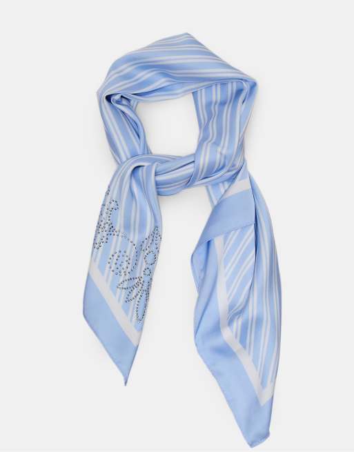 Stradivarius - Sciarpa blu cielo a righe diagonali con inserti