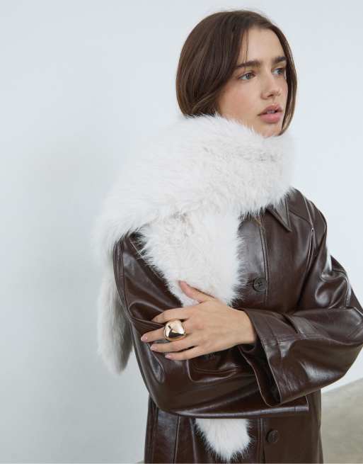 Stradivarius - Sciarpa in pelliccia sintetica écru con pompon
