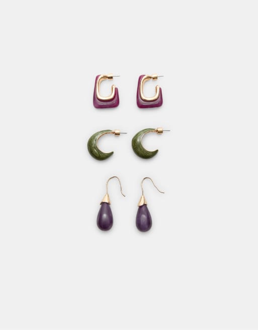 Stradivarius - Set da 3 paia di orecchini a cerchio e pendenti lilla a contrasto
