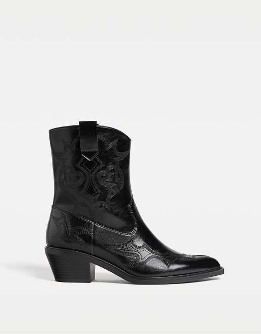 Stradivarius - Stivaletti stile cowboy con tacco neri