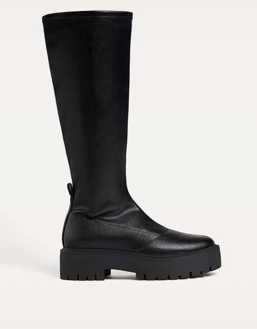 Stradivarius - Stivali al ginocchio elasticizzati neri con suola a carrarmato