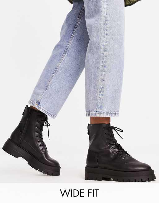 Stradivarius - Stivali stringati bassi neri a pianta larga