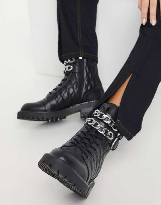 Stradivarius - Stivali trapuntati neri con catena