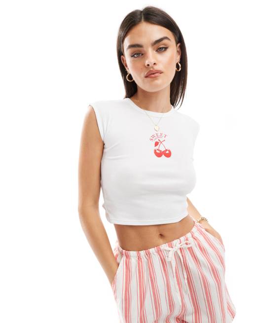 Stradivarius - T-shirt bianca aperta dietro con ciliegie