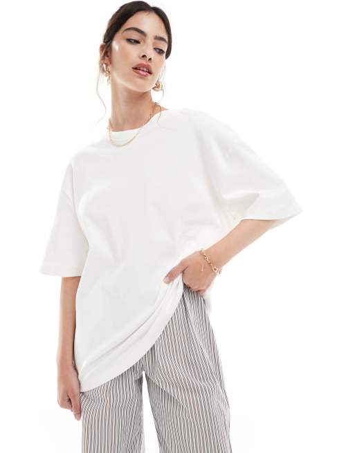 Stradivarius - T-shirt oversize in cotone pesante bianco