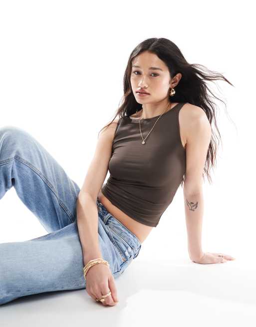 Stradivarius - T-shirt senza maniche marrone con scollo a barchetta