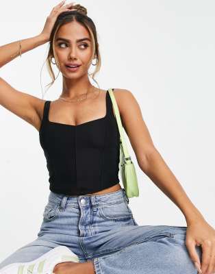 Stradivarius - Top a corsetto nero testurizzato