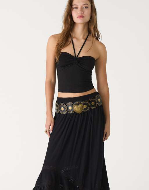 Stradivarius - Top a fascia nero con laccetti