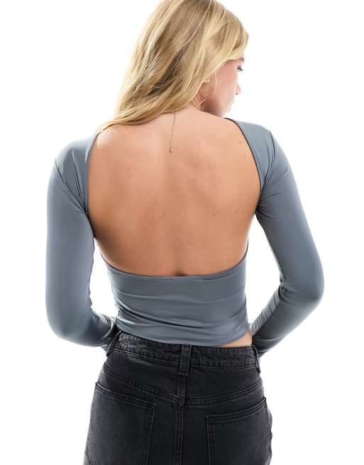Stradivarius - Top a maniche lunghe aperto sulla schiena antracite