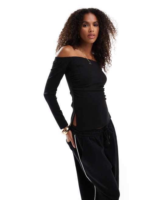 Stradivarius - Top a maniche lunghe nero a spalle scoperte
