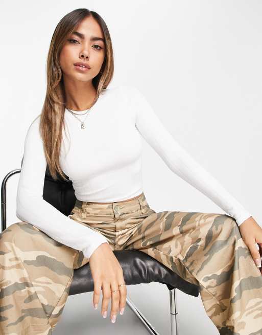 Stradivarius - Top bianco a coste larghe
