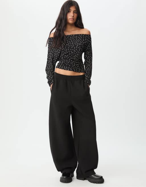 Stradivarius - Top con scollo asimmetrico lavaggio denim grigio