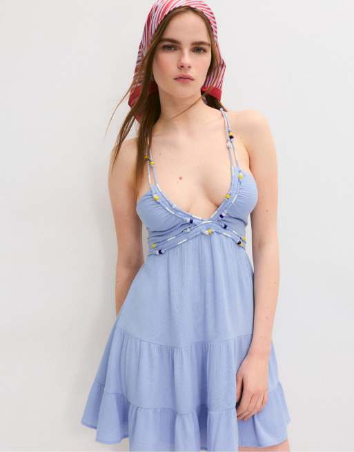 Stradivarius - Vestito corto blu con perline