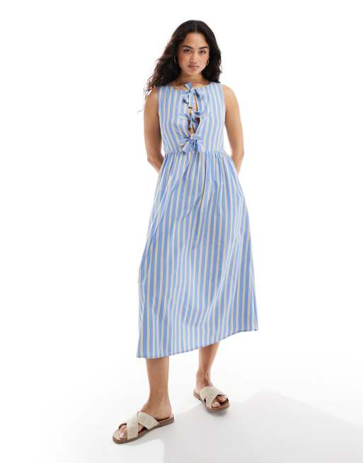 Stradivarius - Vestito lungo blu a righe con fiocco