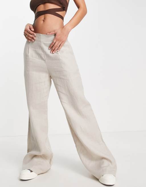 Style Cheat - Pantaloni in lino beige a fondo ampio in coordinato