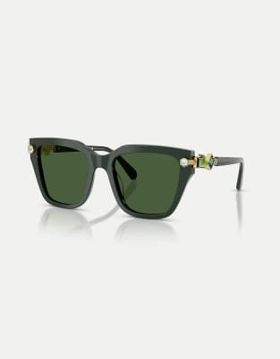 Swarovski - Irregular - Occhiali da sole verde scuro con lenti verdi