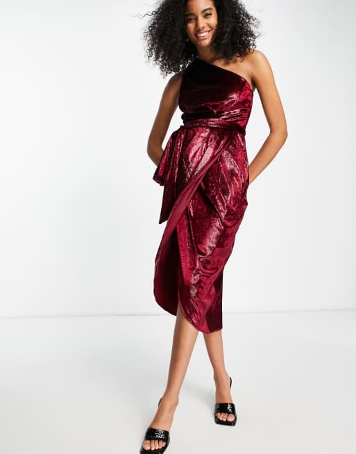 Ted Baker - Abinaa - Vestito midi monospalla drappeggiato metallizzato rosso
