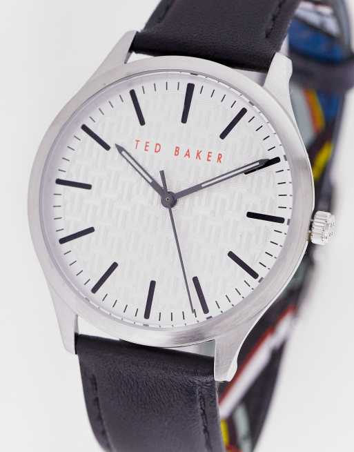 Ted Baker - Orologio con quadrante bianco e cinturino in pelle martellata nera