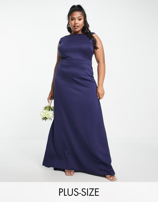 TFNC Plus - Vestito lungo da damigella con fiocco sul retro blu navy