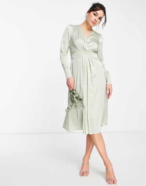 TFNC - Vestito avvolgente con maniche lunghe in raso verde salvia