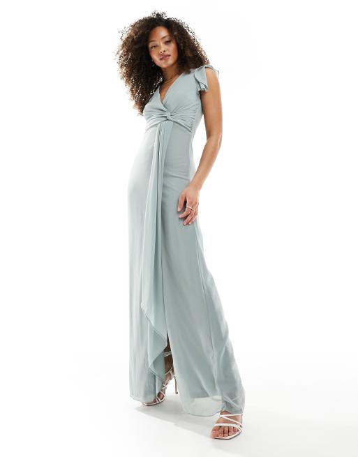 TFNC - Vestito da damigella lungo con piege e maniche a volant salvia
