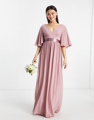 TFNC - Vestito lungo da damigella color lavanda a pieghe con maniche a kimono a pipistrello
