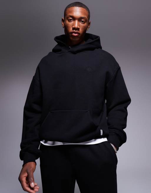 The Couture Club - Essentials - Felpa con cappuccio nera slavata in coordinato