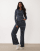 Esclusiva The Frolic - Coordinato in misto cotone con pantaloni a fondo ampio e top a maniche lunghe blu navy a righe con scollo a V e tasca sul davanti