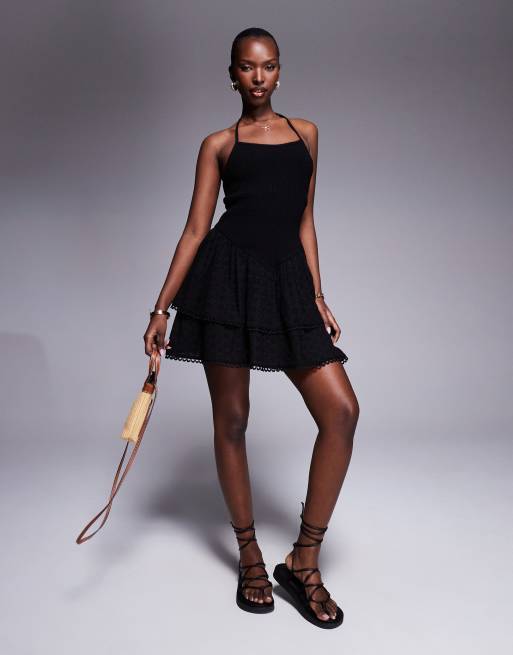 Esclusiva The Frolic - Vestito corto a balze in pizzo sangallo misto lino