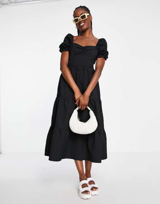 The Frolic - Vestito grembiule lungo milkmaid nero testurizzato