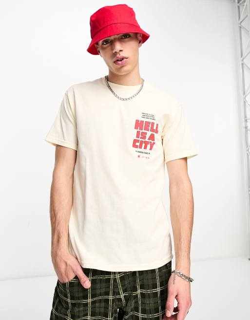 The Hundreds - T-shirt bianco sporco con stampa “Hell is a city” sul davanti e sul retro