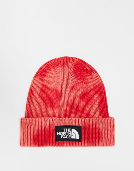 The North Face - Berretto con risvolto e logo applicato rosso tie-dye