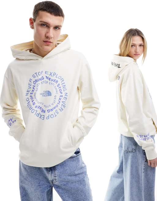 The North Face - NSE - Felpa con cappuccio bianco sporco con grafica del logo