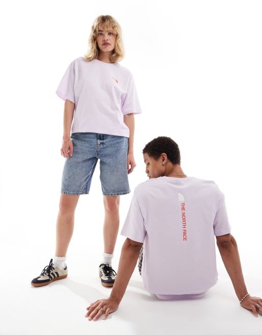 The North Face - NSE - T-shirt oversize lilla con stampa del logo verticale sul retro