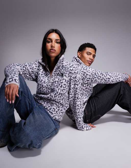 The North Face - Shispare - Pile grigio leopardato con logo e zip corta - In esclusiva per ASOS