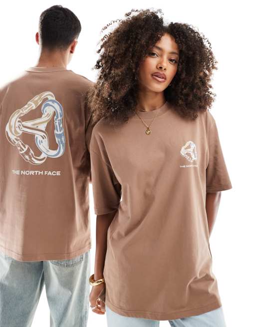 The North Face - T-shirt oversize marrone chiaro con stampa di moschettoni attaccati sul retro
