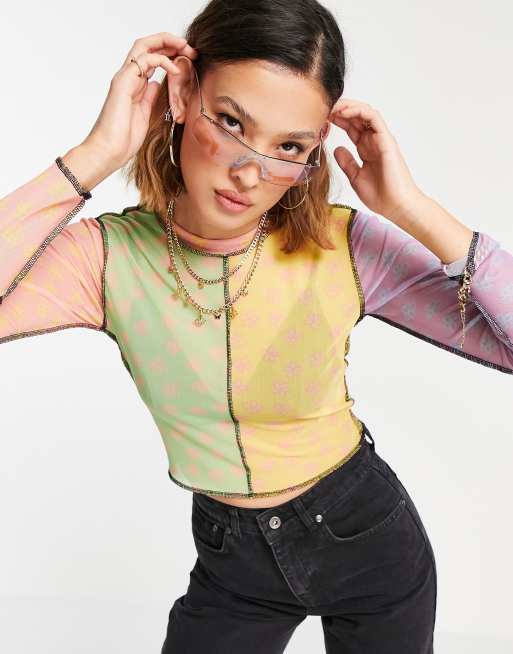 The Ragged Priest - Crop top accollato in rete con motivo patchwork a fiori