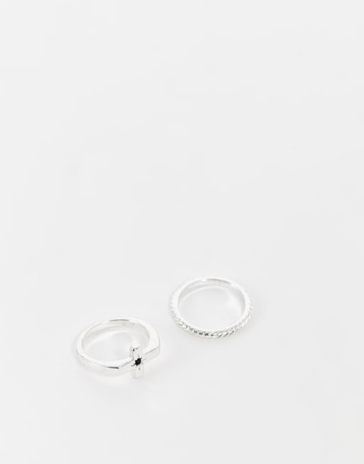 The Status Syndicate - Confezione da due anelli argento zigrinato stile corda e con pietra