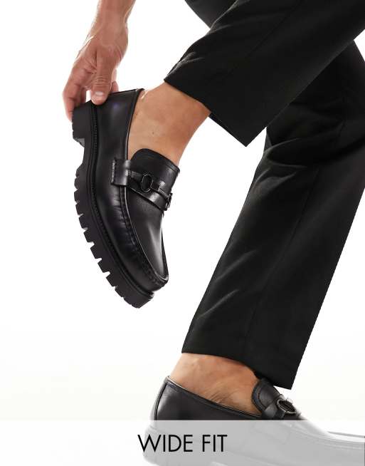 Thomas Crick - Mocassini neri in pelle con morsetto e suola spessa a pianta larga